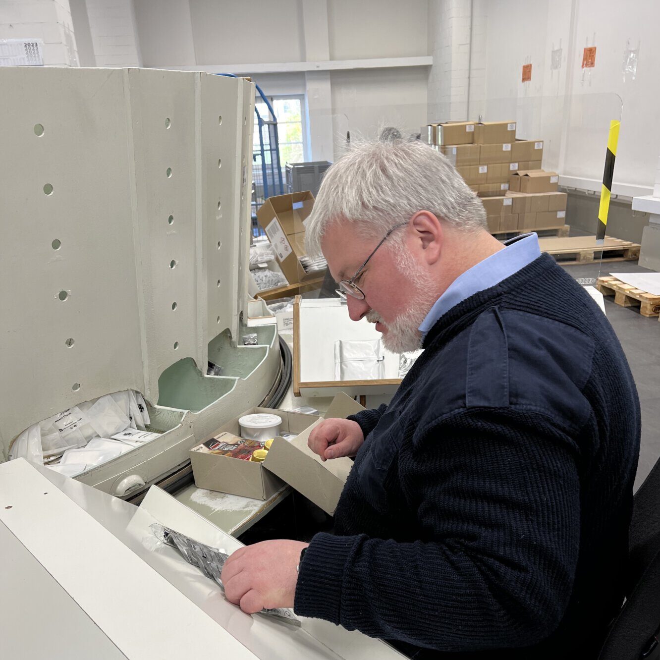 Ein bedeutender Bestandteil der Verpflegung für Soldaten sind die sogenannten Einpersonenpackungen. Diese Notrationen sind von entscheidender Bedeutung, um die Nahrungs- und Nährstoffversorgung der Soldaten in Kriegsgebieten sicherzustellen. Was viele nicht wissen ist, dass diese EPa-Rationen vor Ort in Oldenburg zusammengestellt, von den dort angestellten Ökotrophen geprüft und stets verbessert oder angepasst werden, um sicherzustellen, dass sie den höchsten Qualitätsstandards entsprechen und von der Truppe angenommen werden. Im Verpflegungsamt wurden mir die einzelnen Komponenten einer solchen Einpersonenpackung gezeigt und erklärt. Die Komponenten orientieren sich dabei an den vorgegebenen ernährungsphysiologischen Vorgaben der Fachabteilung M1 in Zusammenarbeit mit dem Kommando Sanitätsdienst der Bundeswehr. Auch durch ihre Beschaffenheit eignen sich so einige Lebensmittel mal mehr, mal weniger für den Einsatz. Diese Tagesrationen für den einzelnen Soldaten werden ebenfalls in Oldenburg an Packkarussellen von Hilfskräften verpackt. Diese Tätigkeit konnte ich während meines Arbeitstages auch ausprobieren – eine ziemlich fordernde Arbeit, da der Aufbau der Rationen strikt nach Bauplan verläuft und eine schnelle Hand-Augen-Koordination bei der Geschwindigkeit des Packkarussells nötig war.